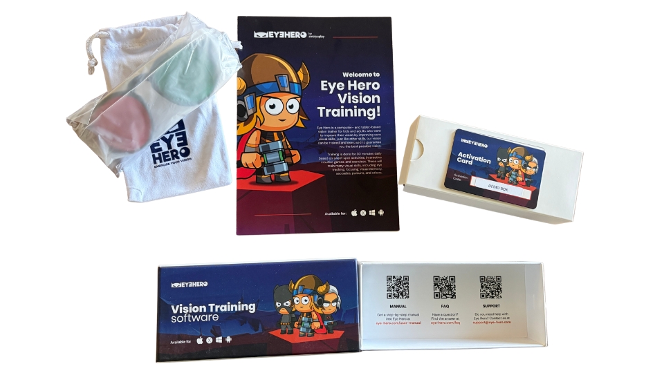 - Eye Hero ships you a starter kit with activation code and glasses