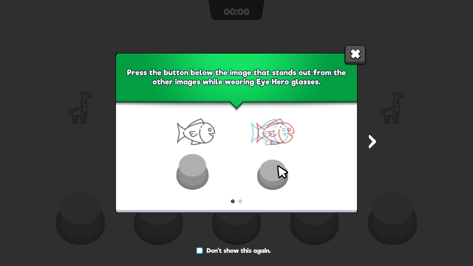 With each game, red/green glasses are worn and the eyes must both be working to have success in the game.