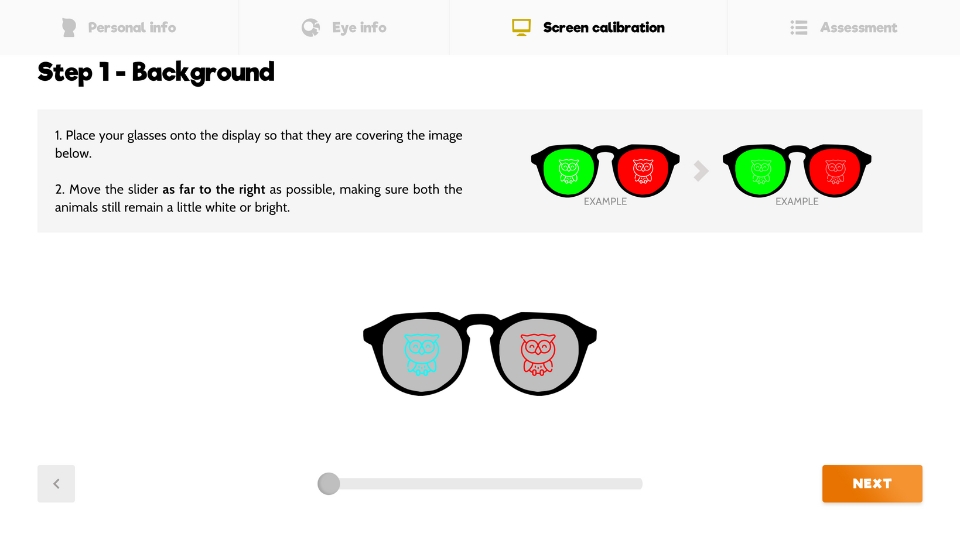 - Complete Onboarding to calibrate your screen, give your age and the eye/s you’d like to focus on so that the algorithm can adapt and personalize your training.