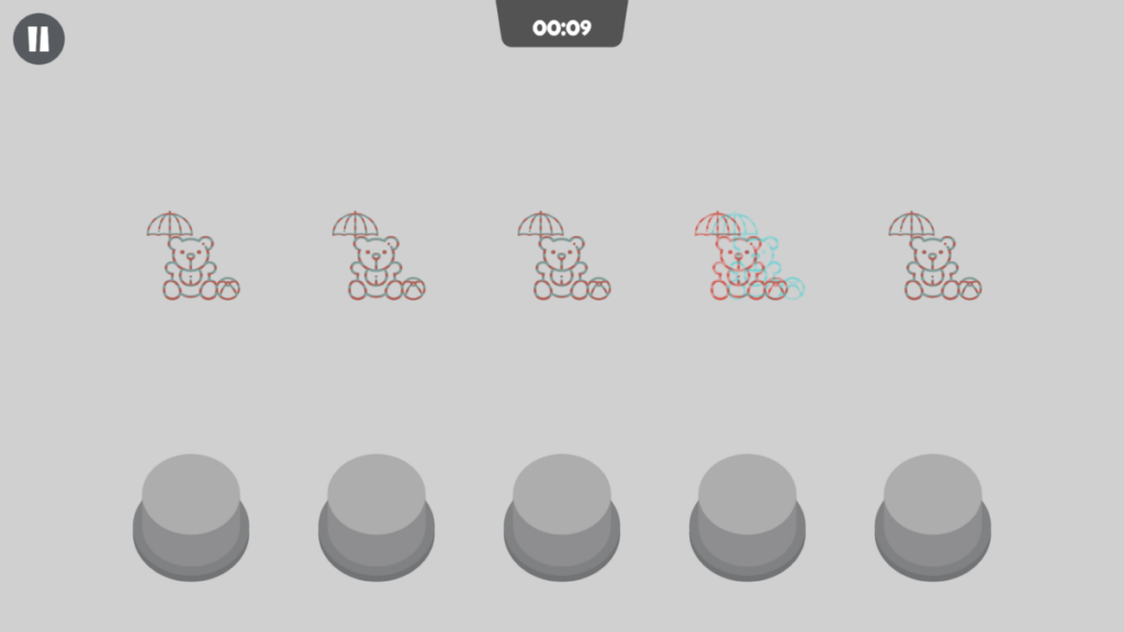 Second, while doing the daily workout in binocular mode, the program goes between regular games and depth perception games. One of these has a Randot background where you select the hidden shape from the options at the bottom.